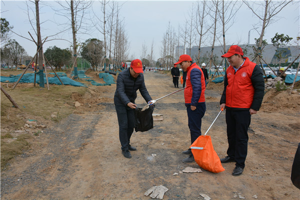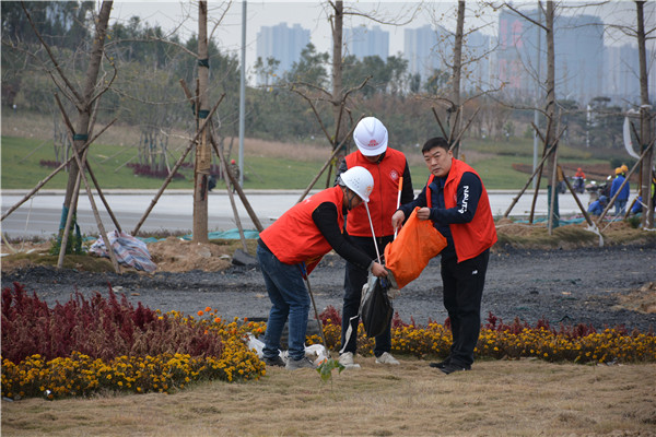 上午十时三十分,志愿服务活动开始后,乐鱼官方网站-乐鱼(中国) 党委委员、副总经理、项目部总经理汪洋亲自带头参加活动,其他党员干部带头干,职工群众积极干,参建单位负责人志愿加入干,大家拿起工具、弯下腰去,捡起草地上的生活垃圾,集中放进现场放置的垃圾桶内;没有拿到工具的同志们也拿起简易垃圾袋,将捡到的生活垃圾放进垃圾袋盛满后再放进垃圾桶内。一时间,党徽熠熠、爱心闪闪、干劲满满,不到一个小时时间,约20人的志愿服务队伍完成了近20000平米区域的垃圾清理任务,景观施工现场面貌大为改观。